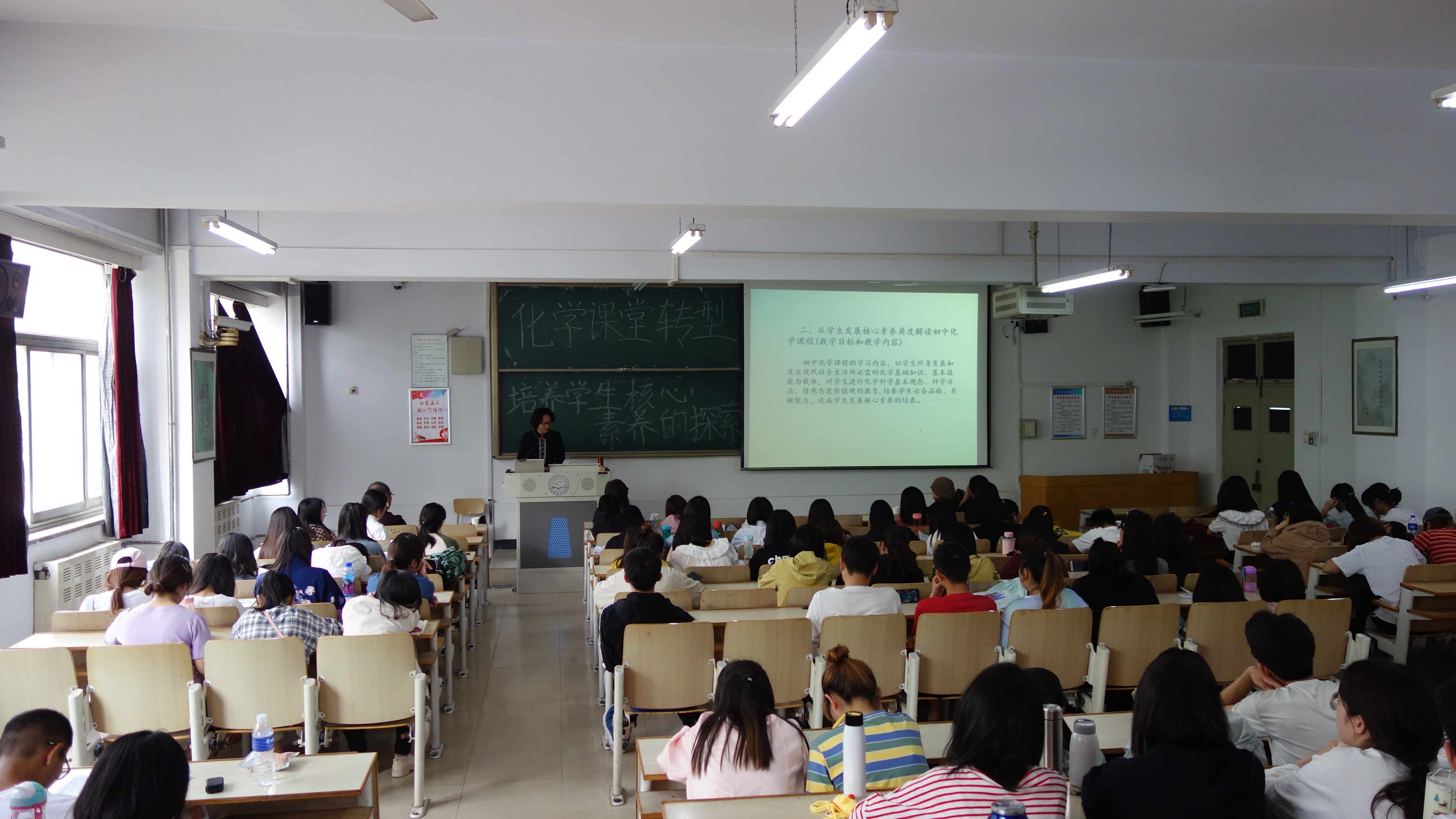 2019年5月14日,beat365中文唯一官网在主楼C-208教室举办“化学课堂转型,培养学生核心素养的探索”的讲座。beat365中文唯一官网院长,秦皇岛教育科研所老师,beat365中文唯一官网学院教学老师以及大一,大二,大三化学专业的全体学生参加了本次活动。