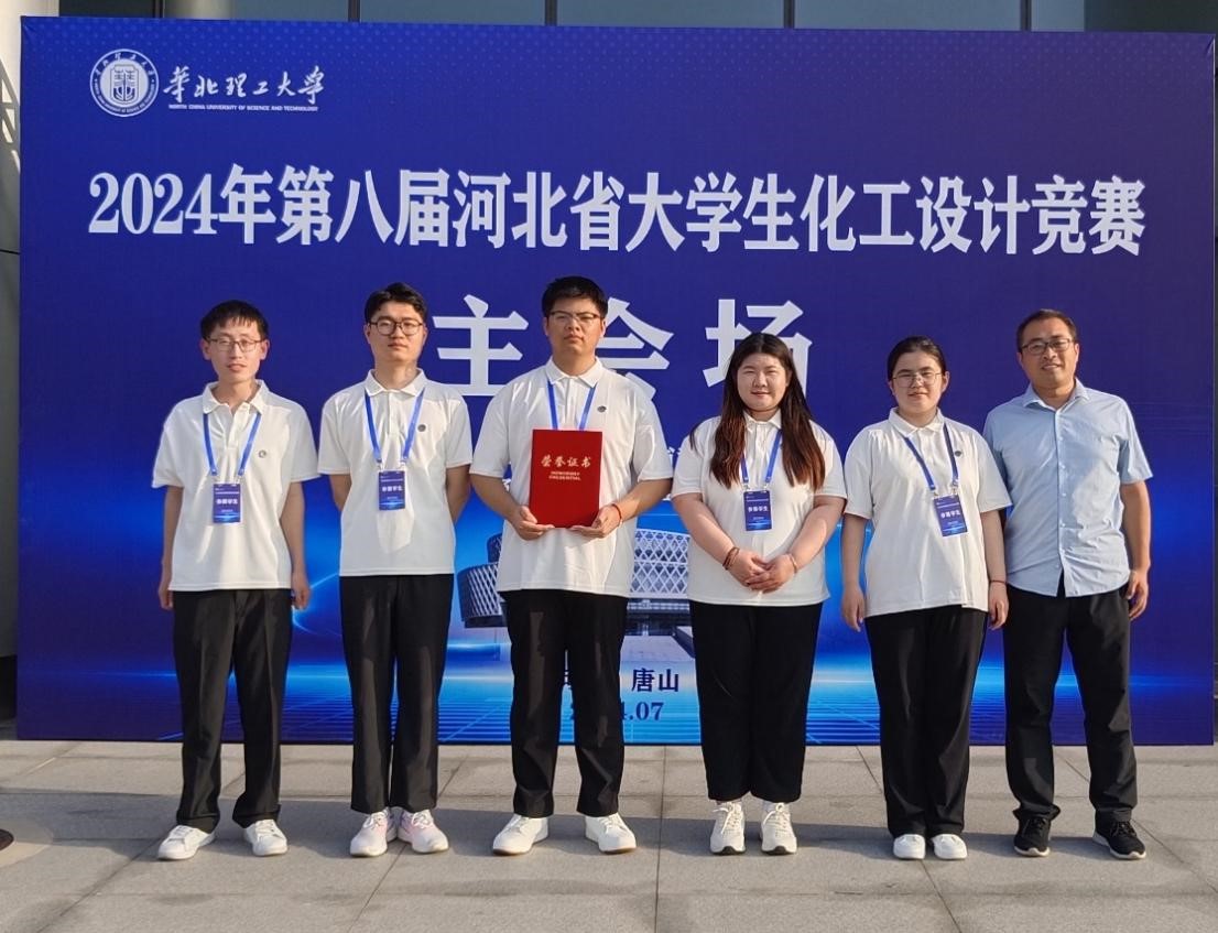 2024年7月26日至29日,河北省第八届大学生化工设计竞赛在华北理工大学顺利举行。经过两天的激烈角逐,由beat365谢江维、刘璐、刘艳平等老师指导,邱国杰、郝梁浩、李佳欣、胡佳敏、樊智诚等5名同学组成的“满面醇风”队以优秀的设计作品和精彩的答辩,在河北省26所院校中脱颖而出,荣获河北省总决赛一等奖。