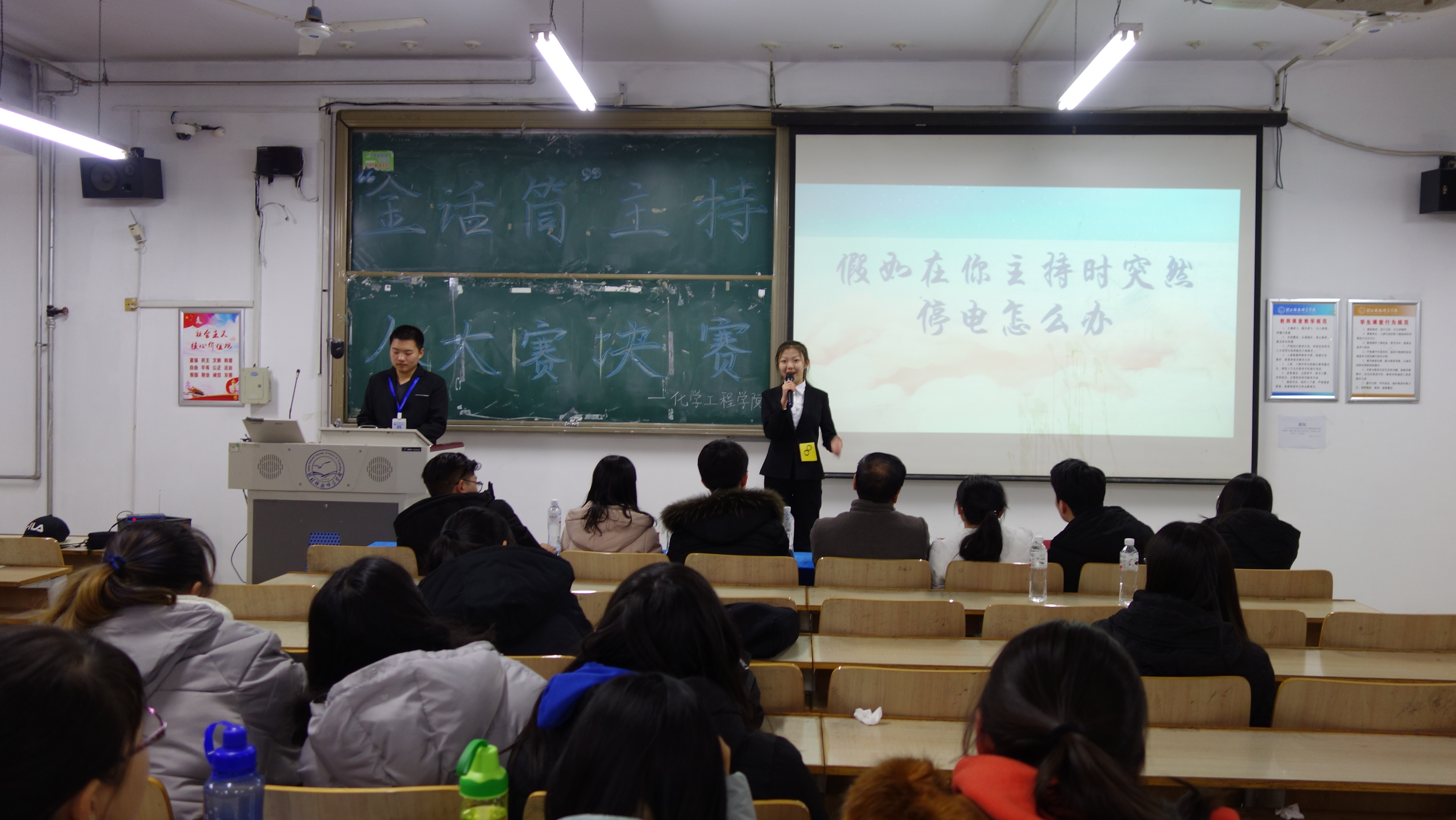 一场精彩的开场舞拉开了序幕。首先参赛选手自由结成两人搭档,进行了一场简单但又优秀的模拟主持。接下来是耀我风采环节,八名参赛选手用富有感情的语言为观众朗诵了他们手中的文章,同时根据主持人提出的要求随机变换自己的情感。最后进入现场我主持环节,对于主持人现场假定的情景,选手迅速做出报道,他们用自己的语言、表情和动作将听众带入情境,这让听众感受到八名选手的能力都很强。最终18应化黄城荣获一等奖;18化工李凤祥、18化工刘书航获得二等奖;18化学付童、18应化高偌琪、18应化李东洋获得三等奖。